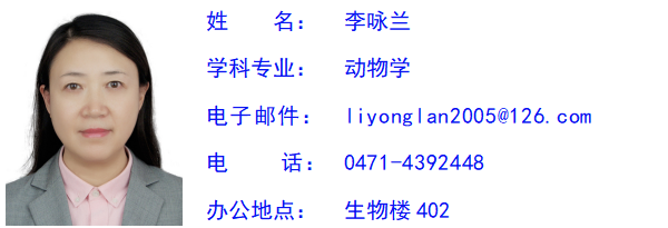 李咏兰,女,汉族,博士,教授。专业型、学术型研究生导师,博士生导师,蒙古国国立教育大学博士生导师。现任教于3003新葡的京集团。现任中国解剖学会人类学分会副主任,内蒙古解剖学会副理事长,《人类学学报》《解剖学报》编委。主讲“人体及动物生理学”(自治区精品课程负责人)、“高级动物生理学”、“人体组成学”、“生理学研究进展”等课程。主要从事民族学与人类生物学交叉学科研究,采用宏观体质人类学与微观分子遗传学、人类生物学与文化人类学研究相结合的方法,对分布在不同生态环境的各民族进行人类生物学研究。主持完成国家自然科学基金项目3项、科技部基础性工作专项1项,内蒙古自然科学基金项目2项。承担完成国家自然科学基金重点项目1项、国家自然科学基金项目5项、内蒙自然科学基金项目6项。目前正在主持国家重点研发计划战略性科技创新合作项目“人类表型组测量技术及表型数据跨尺度关联合作研究”(2020YFE0201600,167万,2020.6-2024.12)、国家自然科学基金面上项目“基于人体测量与田野调查的西北民族走廊16个族群人体组成成分的研究”(32071183,58万,2021.1-2024.12)。发表学术论文110余篇,其中SCI收录15篇,EI收录5篇。出版学术专著3部。多次获得内蒙古师范大学优秀硕士生导师称号,指导的本科生、研究生多人获得校级或自治区优秀学位论文。