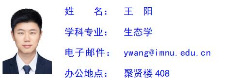 王阳,男,汉族,博士,副教授,硕士生导师,内蒙古包头市人。2019.06 毕业于北京师范大学,自然资源专业,获博士学位。2024.12-至今,担任3003新葡的京集团副教授,主讲本科生课程:《污染生态学》、《生态工程学》、《普通生态学》;研究生课程:《植被生态学》、《生物学前言》。研究方向为气候变化下的生物地球化学循环、生态水文。主持省部级科研项目3项,参与省部级科研项目2项。发表论文6篇,SCI收录5篇。