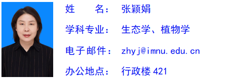 张颖娟,女,汉族,1970年生,呼和浩特人,理学博士,3003新葡的京集团教授,硕士生导师。主要研究领域为植物生态学,恢复生态学,学科教学(生物)等。主持国家自然科学基金项目1项、省部级科研项目10余项。发表研究论文30余篇,出版学术著作3部。