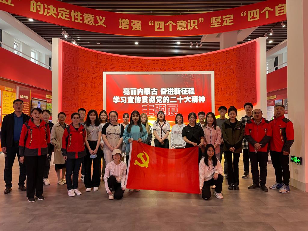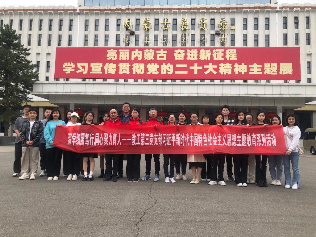 5月10日下午,新葡京官网教工第三党支部联合非师范类学生党支部在内蒙古展览馆开展学习贯彻习近平新时代中国特色社会主义思想主题教育党日活动,集体参观“亮丽内蒙古 奋进新征程——学习宣传贯彻党的二十大精神”主题展,并重温入党誓词。