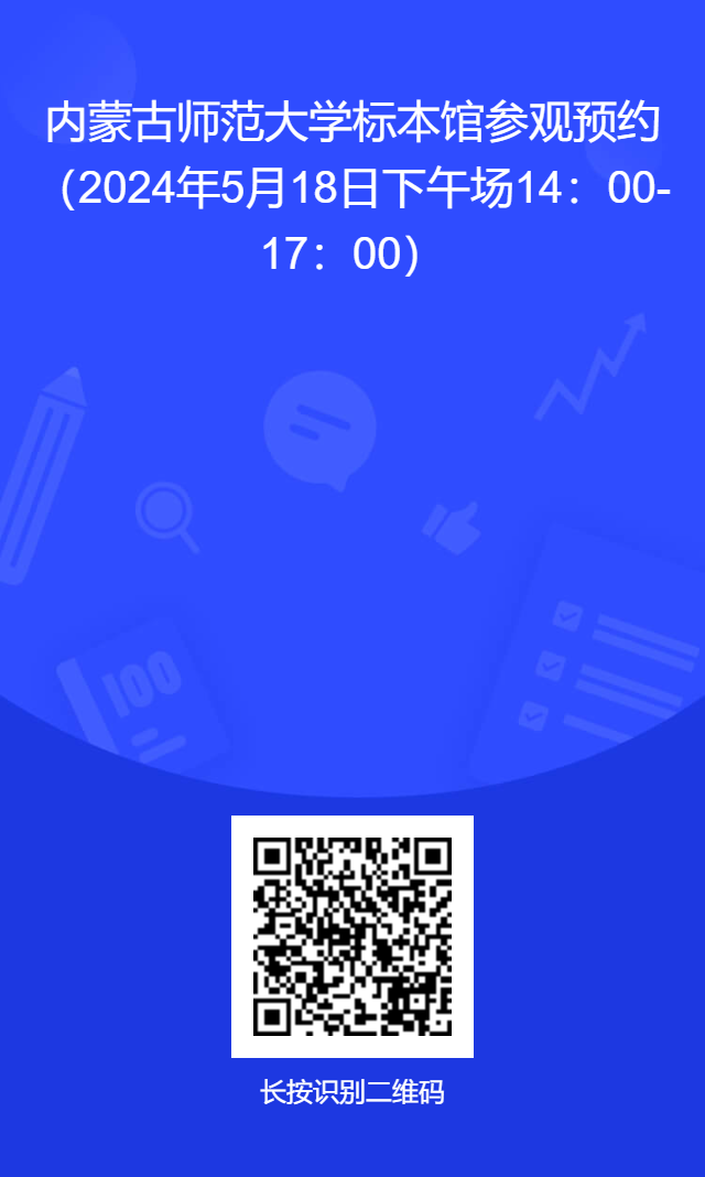 为迎接第24个国际生物多样性日,呼吁广大群众参与到生物多样性保护工作中来,5月18日,内蒙古师范大学生物标本馆将举办第一场“生物多样性,你我共参与”生物标本馆开放日活动,届时将向公众开放,欢迎社会各界人士前来参观,一同探索生物多样性的奥秘,共同助力生态未来!