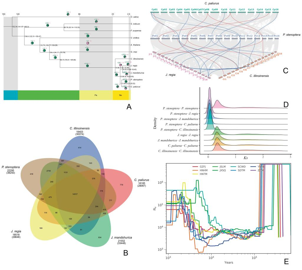 近期,内蒙古自治区高等学校蒙古高原生物多样性保护与可持续利用重点实验室成员、新葡京官网3003新葡的京集团李永教授团队在进化生物学领域期刊“Plant Diversity”上发表最新研究成果“Multi-omics analyses provide insights into the evolutionary history and the synthesis of medicinal components of the Chinese wingnut”。
