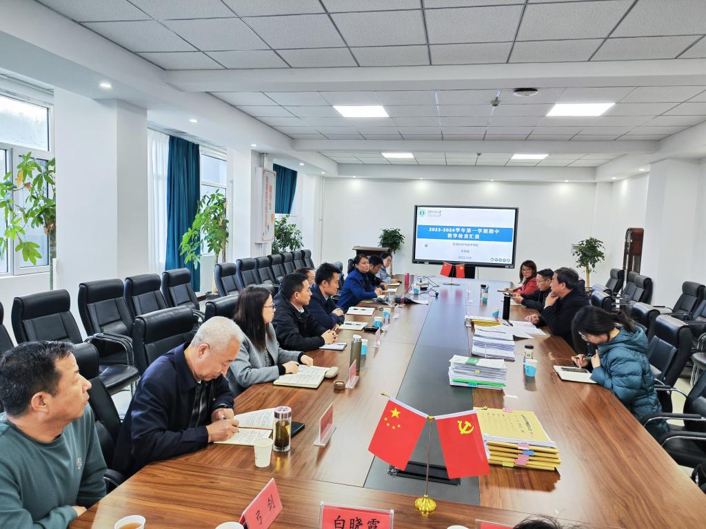 2023年11月9日下午,学校期中教学第四检查组来到新葡京官网进行检查。学院领导、系主任、教学督导组成员参加会议。教学副院长王铁娟代表学院对本学期本科教学进行了总体汇报,并对生物科学专业师范认证准备情况向检查组进行了详细汇报。检查组认真查阅了新葡京官网常规教学材料,对新葡京官网日常教学的规范性给予了充分肯定。