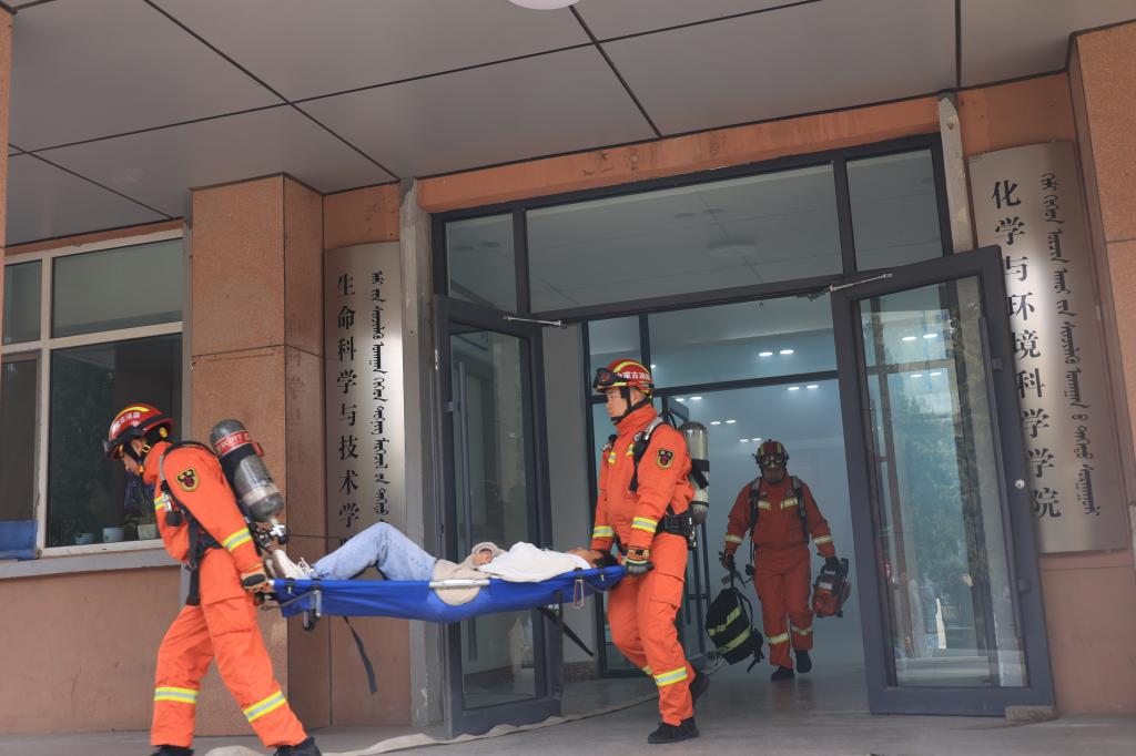 为进一步提升实验室安全管理水平,增强师生安全意识和应急处置能力,12月10日上午,学院和化学与环境科学学院在聚贤楼联合组织开展实验室消防安全应急演练活动。两学院领导班子、师生代表200余人参加演练活动,活动邀请赛罕区山丹街消防救援站和校保卫处全程进行现场指导与保障。