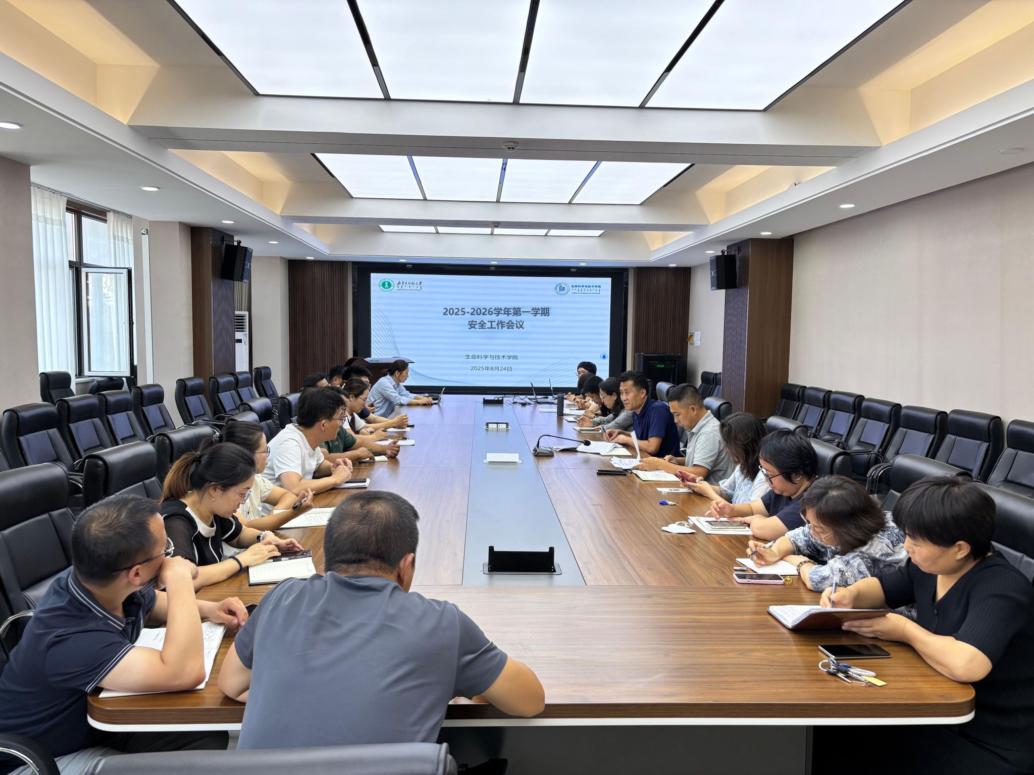 为扎实推进新学期安全工作,强化责任意识,8月24日下午,3003新葡的京集团召开2025-2026学年第一学期安全工作会议,全体院领导、各系主任、实验中心主任、学工办主任,团总支负责人、教务办相关人员、实验员参加会议。