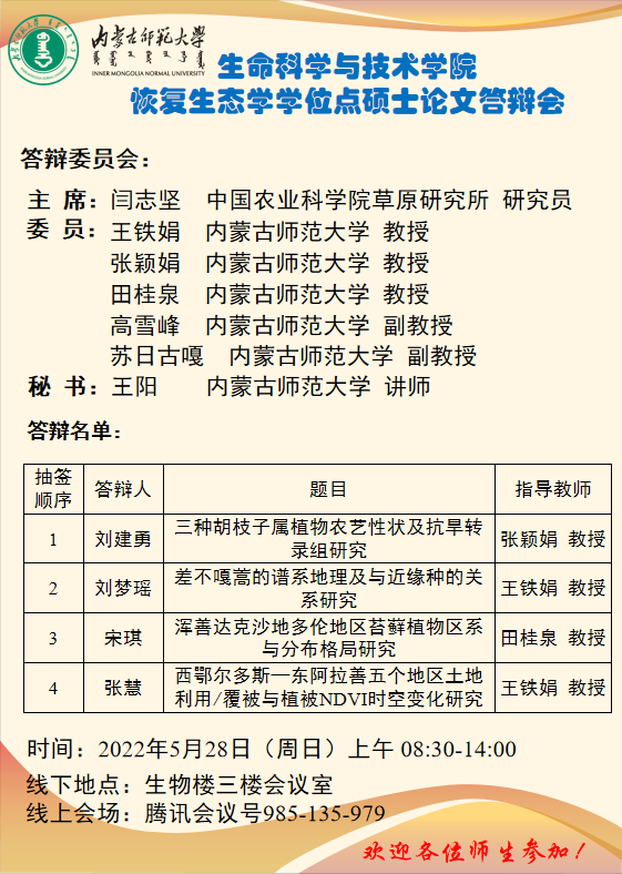 3003新葡的京集团恢复生态学学位点硕士论文答辩会