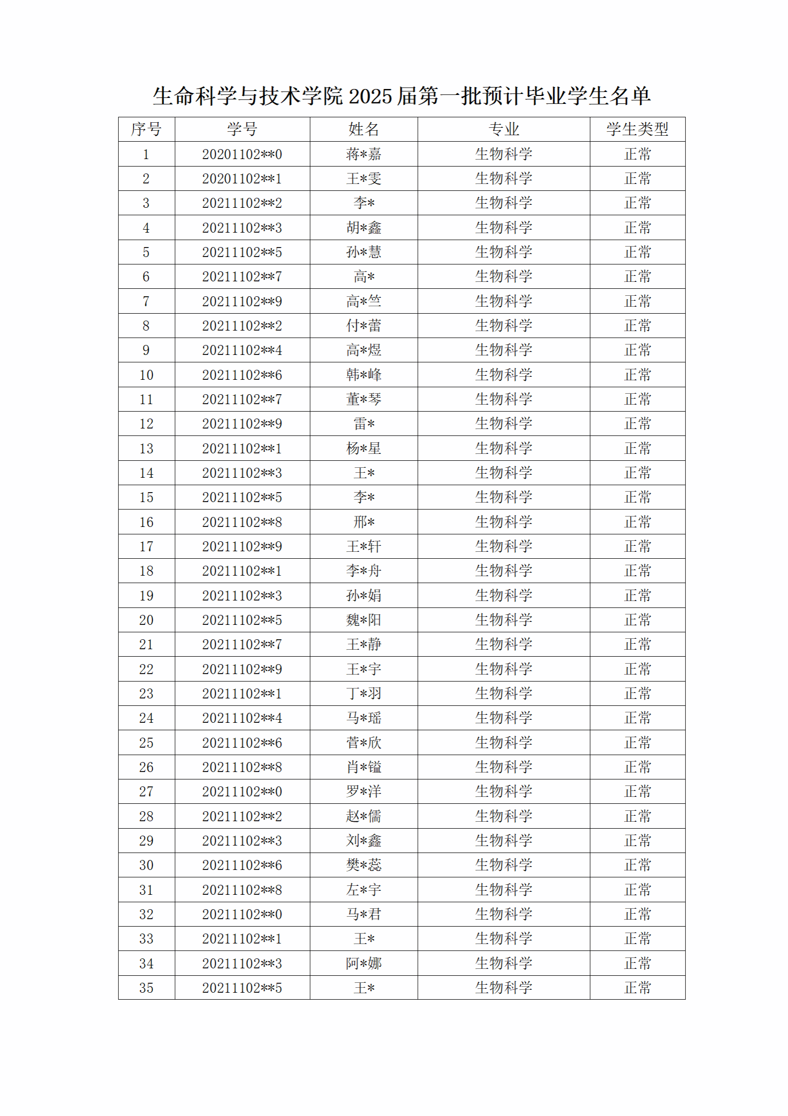 本届全部预计毕业生名单,包括续读、应届、提前毕业。见附表1。